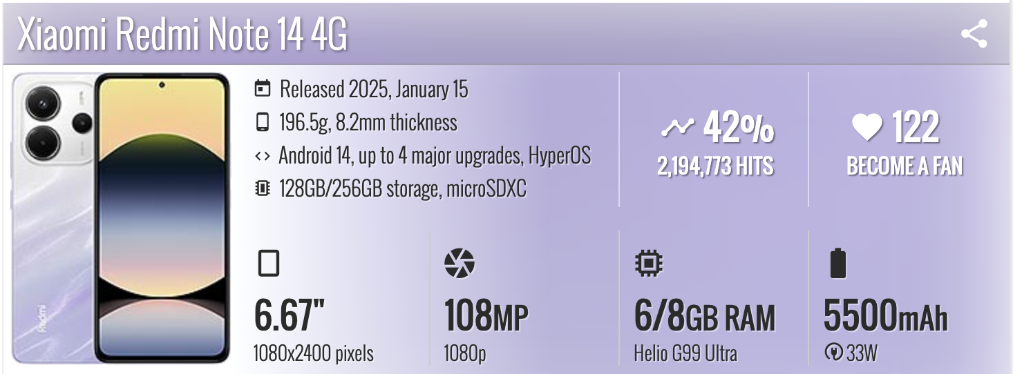 The NOTE 14 8-256 combines a powerful 8GB RAM with 256GB of storage, delivering smooth multitasking and ample space for apps and files. Its advanced features and robust specifications make it an ideal choice for users seeking reliable performance and efficient handling of demanding tasks. Designed for those requiring both speed and capacity, this device ensures a seamless experience in productivity and entertainment.